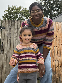 That Basic Raglan Sweater is a top-down sweater with a raglan construction, back neck shaping (optional), three-quarter length sleeves (optional), and instructions available for a cardigan version with pockets (optional). Make your sweater striped like the sample or completely solid. Available in 9 inclusive sizes, worn with 0-2” 0-5 cm of positive ease. I originally created a free tutorial for the pullover version of this sweater years ago and have decided to really give this a good clean up and turn That Basic Raglan into a proper pattern. The original pullover tutorial is still available for free, but if you want a more in-depth pattern, then please consider purchasing this thoroughly tested and edited design. A wardrobe staple you’ll want to revisit again and again. The sweater samples are made in collaboration with Chelsea Yarns with exclusive kits available for pre-order on chelseayarns.com or at CAKEpalooza October 17th, 2025