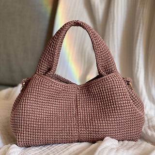It’s made using Tunisian crochet (Tunisian simple stitch), which creates a dense fabric with very little stretch. To help the bag keep its shape, it’s fully lined with interfacing. The handle includes a plastic canvas sheet so it stays firm, and there’s also a bottom insert to prevent sagging, meaning the bag looks good whether it’s empty or filled with all your everyday things!