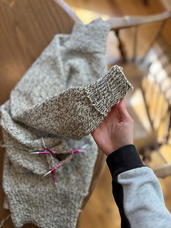 “Effortlessly classic and endlessly wearable, The Briar Sweater is a timeless staple designed for everyday ease. Knit in a worsted weight, the silhouette is relaxed yet considered, striking that rare balance between ease and polish. A refined high neckline brings quiet sophistication, tracing a clean, elevated line while offering gentle warmth. The body is worked in smooth stockinette complemented by subtle garter details that mimic tailored seam lines—an understated nod to thoughtful construction. Designed as an elevated essential, this is an effortless yet intentional go-to for everyday wear.”