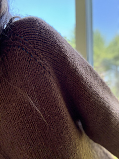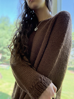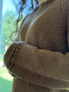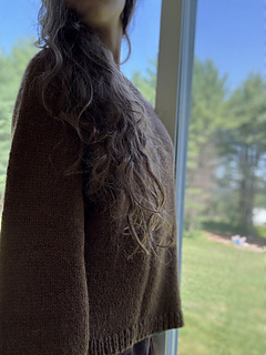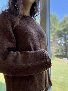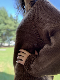This sweater is knit from the top down with raglan shaping worked in twisted stitches for a clean, textured look. The body is mostly stockinette, making it a relaxing knit with just enough detail to keep things fun. The bottom of the sleeves feature a bobble-like lace section for a bit of variety without being too complicated. The pattern includes simple construction, minimal finishing, and a comfortable, everyday fit—great for knitters who want a satisfying project with a few fun twists. It’s knit top down, making it easy to try on as you go.