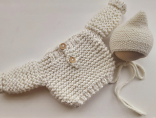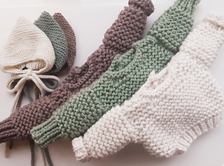 It is made for newborns. The yarn used is a mega chunky but smaller needles are used to achieve size. You will need 2.6 balls of the specified yarn or 110 meters of an alternative yarn that matches the gauge. The pixie bonnet is made using DK yarn approx 30 g. The sweater is a super fast knit - a couple of hours max x