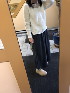 It’s two types of sleeves and two types of neck ending are inc in the pattern. As sweater is knitted top down it can be easy customised to suit any body shape with adjusting of sleeves and body length.
