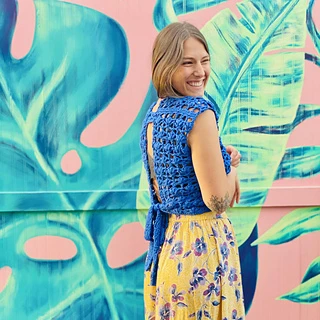 -350-1000 yards of soft, cotton weight 3 yarn with a good drape. This is extremely important. If the yarn you choose is too stiff the top will be very boxy and you won’t get the end result pictured in the pattern photos.