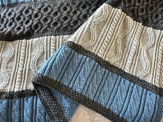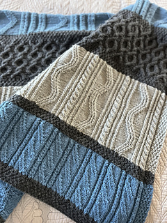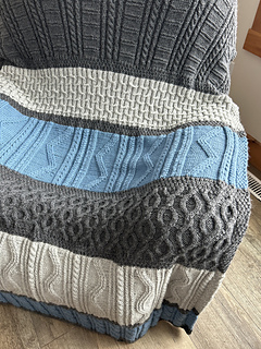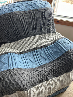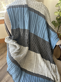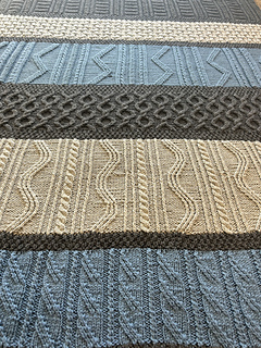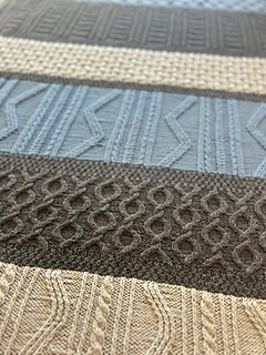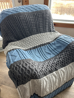 The Cozy Cable Knit Afghan was my 9th Mystery Knit Afghan. It is a 7 section afghan with 7 unique cable patterns.