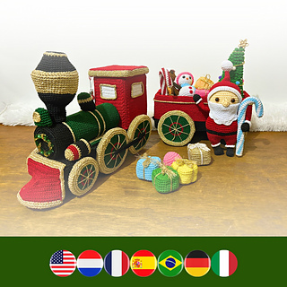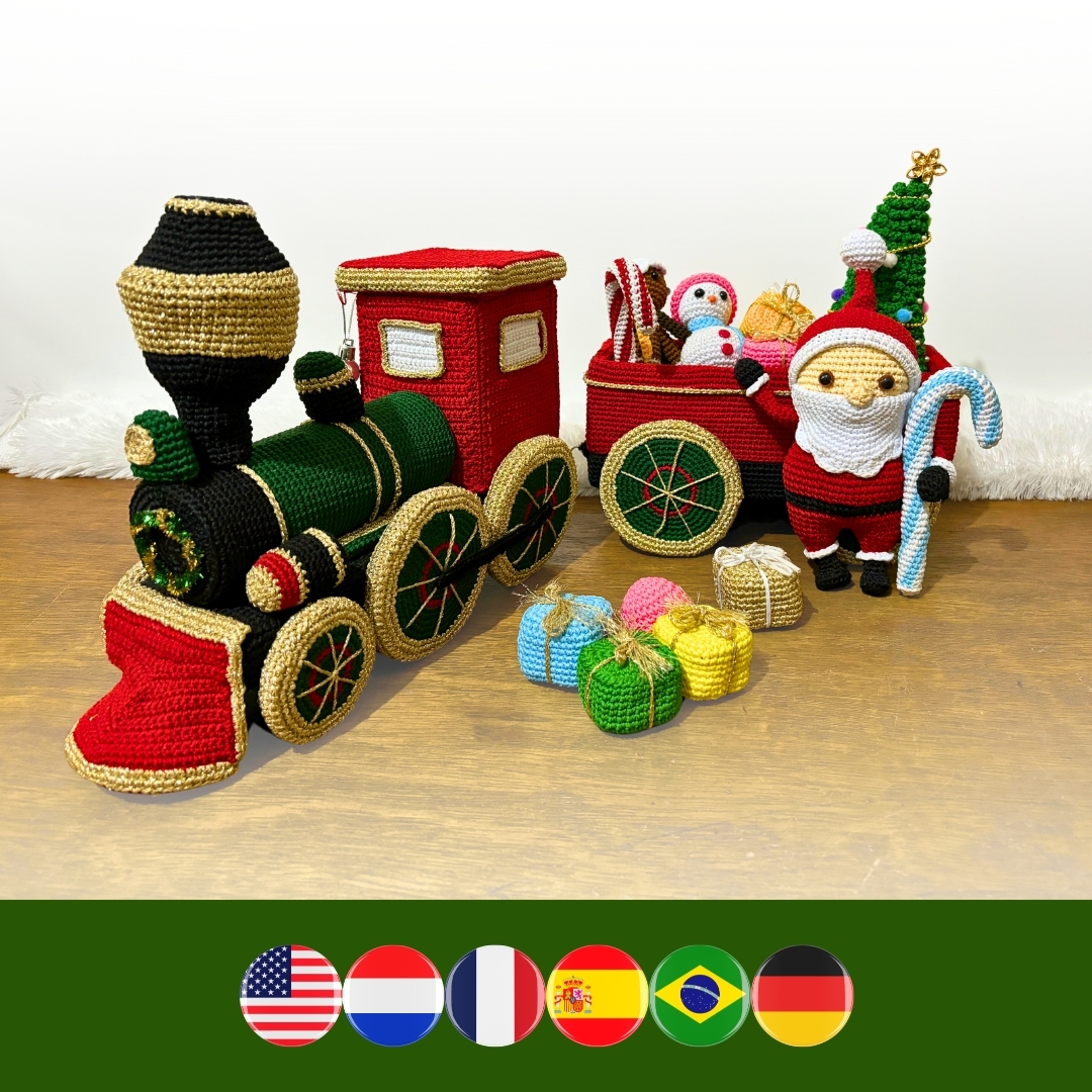 Size of finished item: the train is 60cm/23.6” long. Santa is 16.5cm/6.5” tall. The tree is 20cm/8” tall.