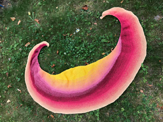 The Crescent Shawl is designed for beginner. It consists of mindless garter stitch throughout the body, which is perfect for beginners to practice their basic knitting skills. Simple increase and easy Short Rows technique are also added to create little shaping to this colorful shawl.