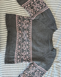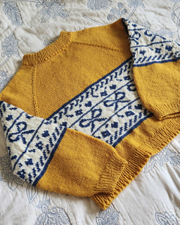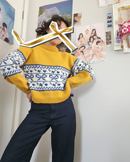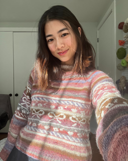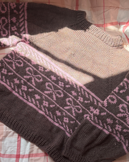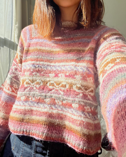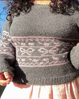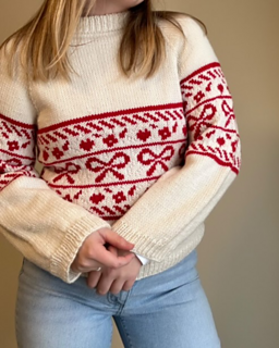 The Darling Sweater is the coziest hug in sweater form—an oversized, unisex knit designed for effortless comfort and charm. Worked seamlessly from the top down, it offers a choice of turtleneck, mock turtleneck, or folded crew neckline, making it as versatile as it is stylish. After shaping the raglan, the design blossoms into a delightful Fair Isle colourwork pattern, featuring sweet little bows, hearts, and flowers for a touch of whimsy. With its dreamy drape, intricate yet beginner friendly details, and timeless appeal, the Darling Sweater is a joy to knit and even more delightful to wear.