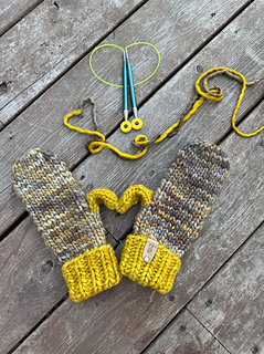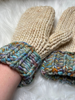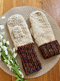 The Divergence Mitts are a simple and timeless pattern exhibiting a contrasting folded cuff detail. These can be made with Super Bulky weight yarn and are designed to use up scraps. You can knit them with a contrasting folded cuff, or as a single cuff. They are versatile and can also be made in one solid color if you choose, and are easily adjustable for the ultimate customization. If you have never knit mittens before, come along on your journey with me as I show you exactly how to knit these every step of the way with included video and photo tutorials! The Divergence Mitts are the perfect pattern for those who want to learn to knit mittens.