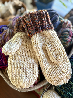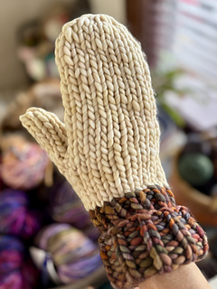 50-60 grams of Super bulky weight in CC (cuff) for both mittens
