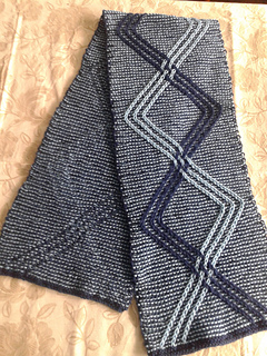This is a unisex scarf. Is a totally reversible scarf, worked in two colors but only one color in a moment. Very fun and addictive to work at.