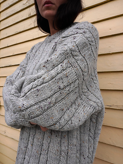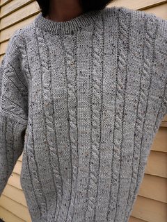 900 g of Peer Gynt by Sandnes Garn. The grey sweater was knitted in the color 1035.