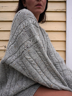the Escape sweater is worked from the top down. The front and back are knitted flat separately, then joined to work the body in the round. Stitches are picked up for the sleeves and neckline, both of which are worked in the round.