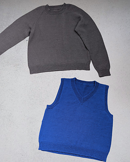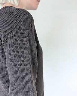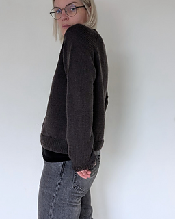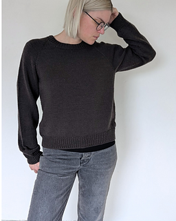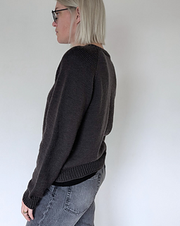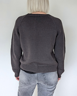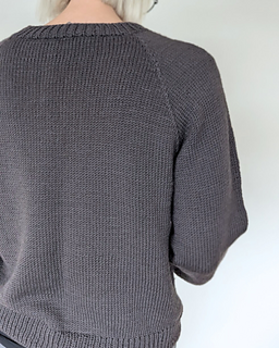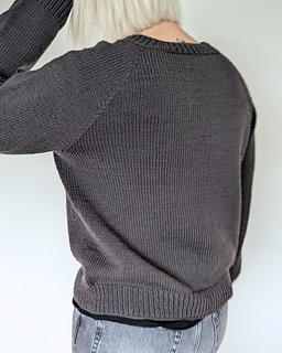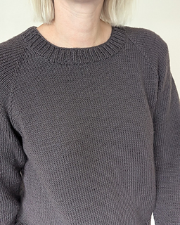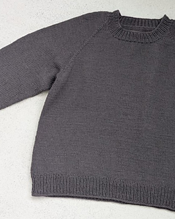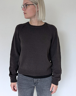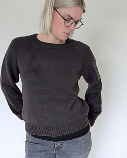The First Sweater is a classic raglan sweater with a straight fit. It is knit from the top down. Both length and sleeve length can easily be personalized.