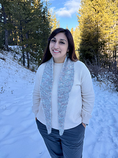 The Gather Scarf is a soft, airy Tunisian crochet scarf inspired by community, creativity, and the quiet magic of working with Suri yarn. This design was born at a local yarn gathering, where a few lovely makers helped me choose colors and encouraged me to try holding Suri lace double. That simple moment sparked the entire project — and the name “Gather.”