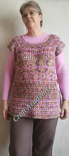 A crocheted tunic which can be used as a cover-up for costume wear, or in place of a shawl which falls off most of the time. Provides chest warmth for the colder days and is easy to wear if you don’t want sleeves.