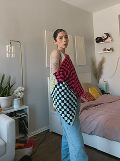 Crochet your own cozy, oversized masterpiece! This granny square sweater pattern is perfect for beginners and pros alike. Endless customization allows you to play with size, color combinations, and granny square variations to create a truly unique piece. The relaxed, off-the-shoulder design is both comfy and stylish.