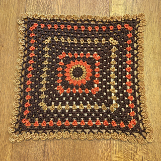 Inspired by the rich, harmonious colours of fall that evoke so many happy memories for me, this design is a journey through time and texture. The magic begins with a stunning Sunburst flower motif, radiating warmth, just like the golden memories of my childhood family meals. As you work in the round, classic granny stitch rounds are interspersed with airy, colourful V-stitches, creating a mesmerizing and comforting combination of textures and colours. The final border, reminiscent of deciduous trees bedecked with autumn leaves, adds a poetic touch that transforms your table into a piece of storytelling.