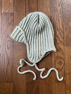 The Hessle Hat is a simple trapper-style hat, with ear folds and i-cord ties.