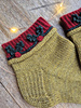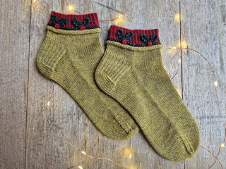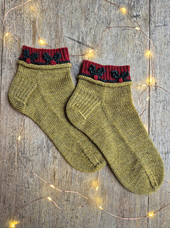 Holly leaves and berries sit like a little winter wreath around your ankles in this pretty festive sock. There is no sewing involved to join the layers together, just knitting, although you may wish to add a few sewn stitches to your work when the knitting is done to keep those delicate leaves in place. To ensure all of the attention goes to your elegant cuff the rest of the sock is plain, relaxing stocking stitch. They also feature a slip stitch heel and rounded toe for a comfortable fit.