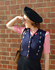 There are other Tyrolean-style cardigan patterns in this lovely collection but this trim waistcoat modelled by Evelyn Keyes is an ideal way to make up a simple, striking garment – and very economical to make! (And you won’t even need the saucepan.)