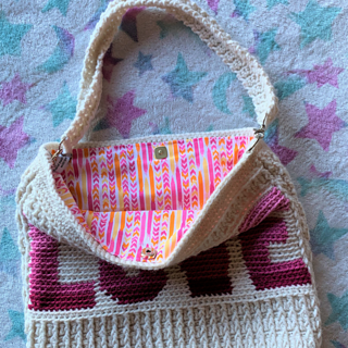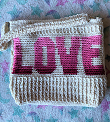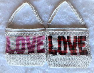 The Hopeless Romantic Bag is the perfect size for hitting the beach, taking the kids somewhere or even just having a bigger purse. The front panel is worked in the style of mosaic overlay, and there are 2 charts included for color work. Each row is cut before beginning again on the right, and I have included a photo tutorial on how to line the bag with fabric so you don’t have to worry about weaving a million ends in. There is also instructions on installing a metallic snap and additional hardware for the handles. The back of this piece is worked back and forth in the Alpine stitch, and the bottom is made flat.