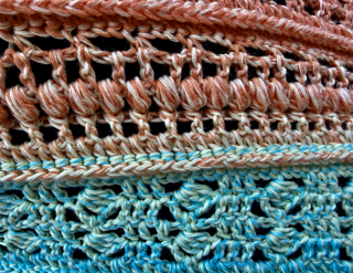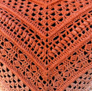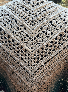 The Illy Shawl is a texture-rich crochet pattern featuring unique stitch clusters and a beautiful mix of: