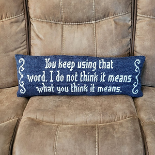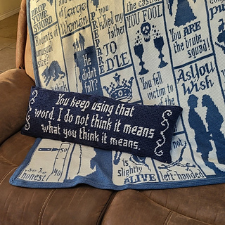 There are many notable quotes in the Princess Bride. I fit many of them into the Inconceivable Blanket pattern, but not all of them. This is one that did not fit nicely….so now you can make it on a pillow! I think this would look great in front of a few taller pillows….the type that I do not have, so I couldn’t take a nice picture.