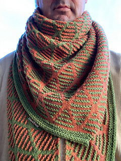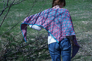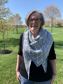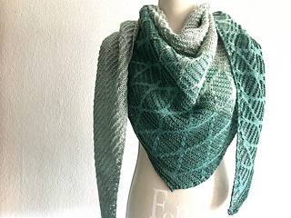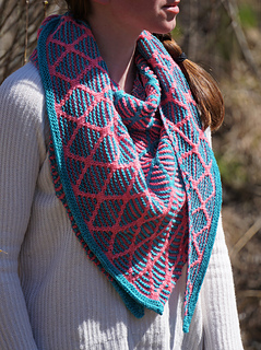 The two colors invert partway through the triangle body for a lovely effect, while the garter sections within each diamond evoke rippling sand and surf.