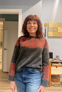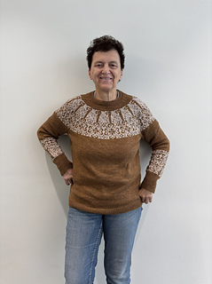 The Keys is a circular yoke worked top down. After the stranded colourwork yoke is worked in the round, stitches are divided for body and sleeves, underarm stitches are cast on, and the lower body is worked in the round to the hem. Sleeves are worked in the round down to the cuffs, where more stranded colourwork is worked just before the cuff ribbing.
