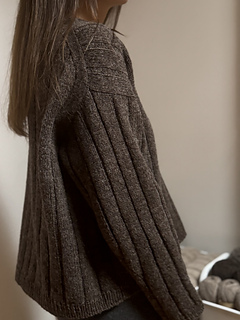 knit with HARRISVILLE Shear (Wellscroft Dorset) in the color Truffle.