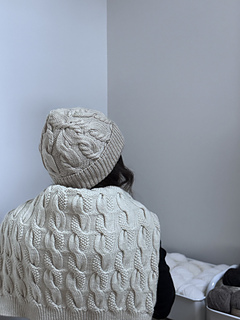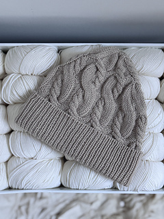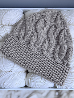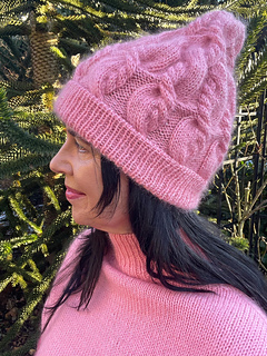 The hat is a top down knit. The cabling is both charted and written. Crown shaping rounds are written stitch by stitch.