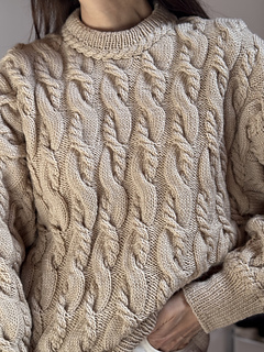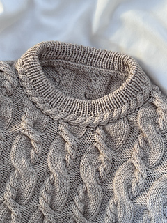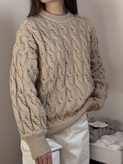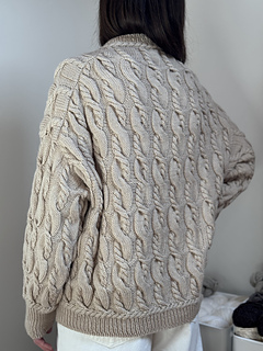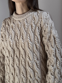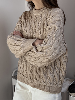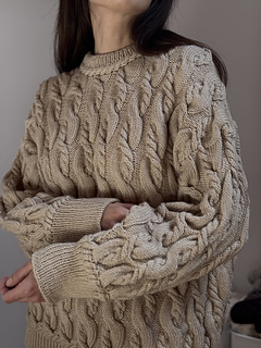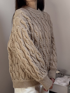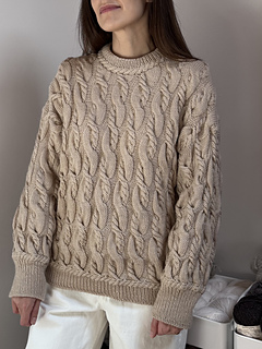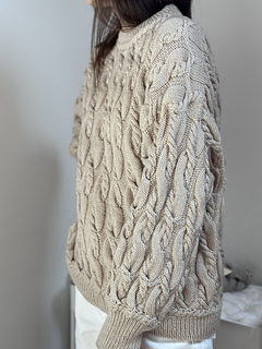 It’s an all over cable knit sweater worked from the top down.
