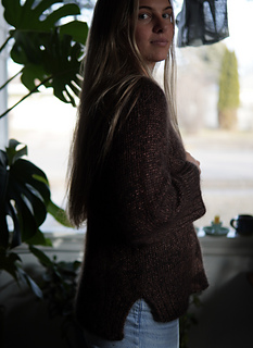 This Lily Pullover is a stunning sweater, featuring a shimmering yarn and two strands of fluffy mohair. This project is knit from the top down, beginning with a folded collar for a clean, structured neckline. Short rows and raglan increases shape the yoke, and then the body and sleeves are knit in the round. To finish, chunky 2x1 ribbing is worked on the sleeves and on a split hem for the body. The flattering silhouette and soft fabric makes this the perfect project for the spring season!