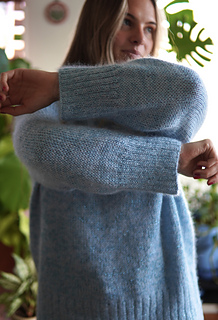 This sweater is written to have 8-9”/20.5-23 cm of positive ease, meaning it will be 8-9 “/20.5-23 cm larger than your widest upper body circumference. The sizes XS (S) M (L) XL (2XL) 3XL (4XL) 5XL are designed to fit an upper body chest circumference of 28-30 (32-34) 36-38 (40-42) 44-46 (48-50) 52-54 (56-58) 60-62 “/ 71-76 (81-86) 91-97 (102-107) 112-117 (122-127) 132-137 (142-147) 152-157 cm