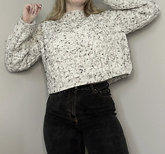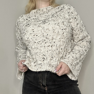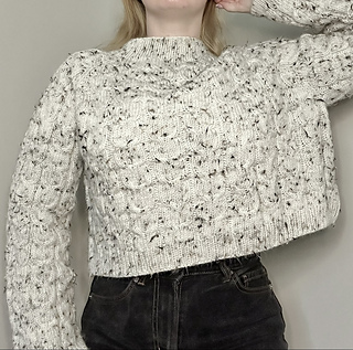 This is a knitting pattern PDF for an adorable cropped textured knit mock-neck sweater.