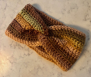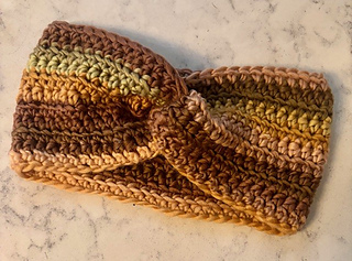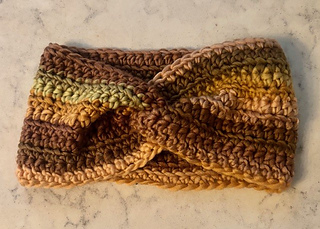 This is an easy crochet pattern. This ear warmer is made with a Worsted Weight (4) yarn, I used Loops and Threads Facets yarn. It comes in beautiful, variegated colours and is so ea