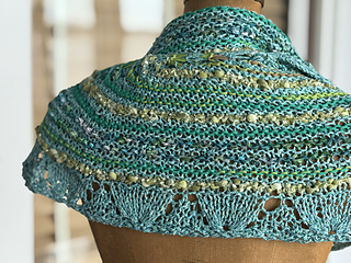 The mellow one is a beautiful and very comfortable crescent shaped shawl. Knitted from the top down in relaxing garter stitches flanked by a pretty lacy edge. The shawl increases steadily right up to where the gorgeous shell lace border starts.