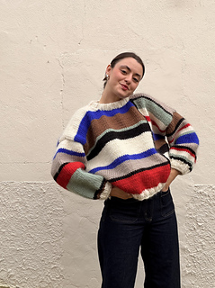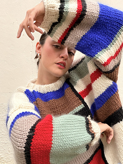 Whether you’re drawn to the primary colours, the quirky layout, or the “walking art piece” energy, this sweater is meant to be fun: fun to knit, fun to wear, and fun to style.
