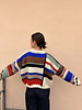 As a little love letter to Mondrian’s Composition series, this sweater is playful, graphic, and just a bit rebellious. It’s a wide, cropped knit with bold stripes and colour blocks that shift halfway across the fabric, as if the sweater decided to redraw its own composition mid-brushstroke.