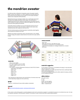 The front and back panels are knitted separately in stockinette, joined together, and the sleeves are worked in the round.