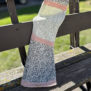 The pattern has 13 sections beginning with a hem, which then proceeds into alternating colored stockinette panels (6 total). The panels are separated by a short transition section (5 total) which is the same color as the hems. The entire scarf uses an easy 5 stitch slip stitch edge that won’t roll. The beginning and ending hems are slightly different so they mirror each other.