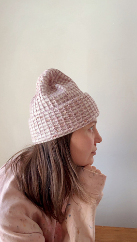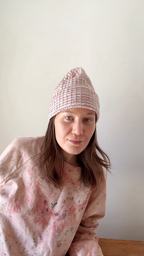 Yarn: Knit using one skein of Cashmere Treats Cashmere Merino Luxe in color Rose Cream as the main color (MC) and one skein of Hu Made Made Twist as the contrast color (CC).
