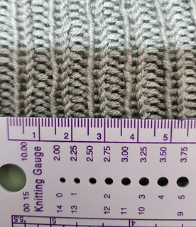 in 8 sts and 17 rows = 5 x 5 cm / 2” x 2” in a 1x1 rib stitch after blocking, with 3.5 mm needles.