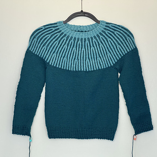 The Rivoli is a baby / toddler / young child’s pullover that’s knitted top down. At the underarms stitches are placed on holders for the sleeves, then the body is continued in one piece. The sleeves are then worked top down too and are seamless.