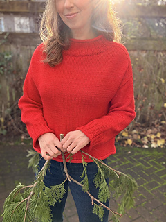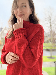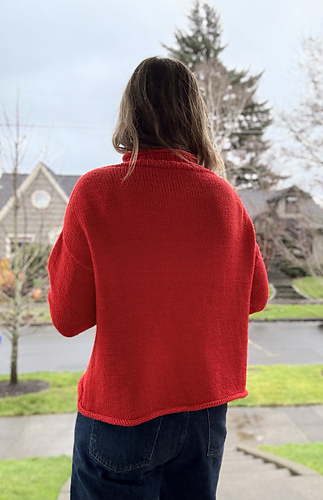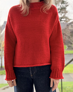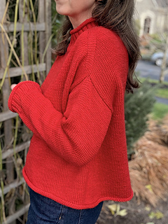 The Rollover is a basic pullover knit from the top down with rolled hems. It features a wide neck and a semi-drop shoulder. Some sizes work armhole increases at the underarm to prevent excess width at the shoulders.