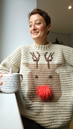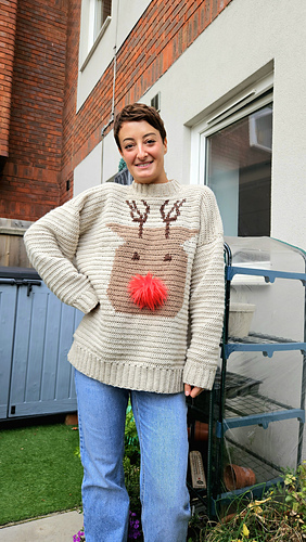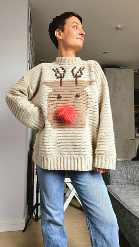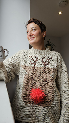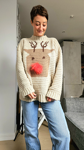 This Christmas crochet sweater pattern is the perfect cosy jumper to get you into the festive spirit. It’s oversized and feels like wearing a hug, although you can always size down if you don’t like that slouchy look! This pattern was born after I came out with the knitted version (see here - https://www.ravelry.com/patterns/library/the-rudolph-sweater ). My online community asked HARD for a crochet version and I couldn’t say no! I’m so glad I went with it because this has to be my most favourite design yet.
