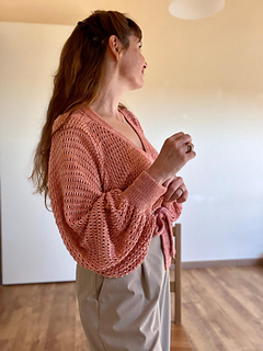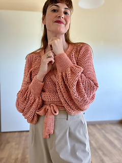 Knit in a light 4-ply silk/ merino yarn, it drapes beautifully — making it the perfect ballet-core staple for slow mornings, studio days, or cozy evenings.