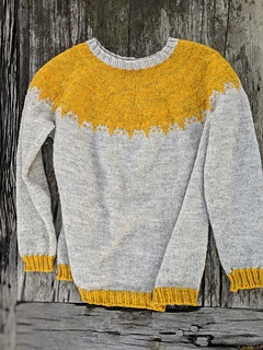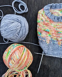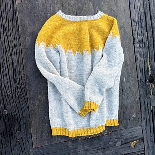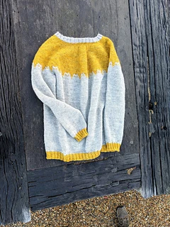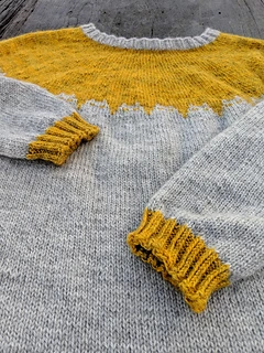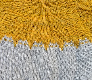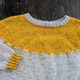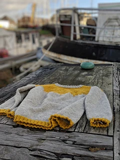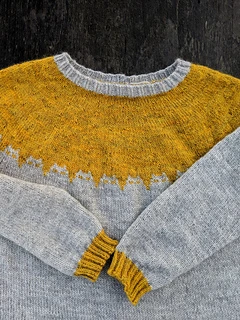 • The grey and yellow version pictured was knit in Triskellion Scylfing DK, in Ember’s End (MC) and Heaven’s Gem (CC).