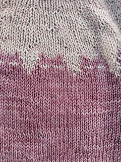 • The peach speckle and grey version is knitted in Skein Queen’s Abbey Ruins (MC) and Flamingo Lagoon (CC).