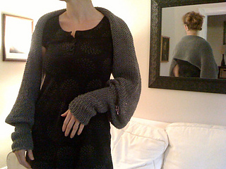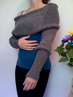 The perfect 3-in-1 convertible handknit shrug, wrap and scarf, perfect for layering over dresses, sweaters and t-shirts. Requires approximately 400 yards of worsted weight yarn, and basic knitting skills such as stockinette stitch, increases and decreases. It is knit in one long piece and requires only basic sewing to close up sleeves. At 72 inches long, the loose, flowing sleeves will fit medium sizes well, but can be made longer or shorter to fit other sizes.